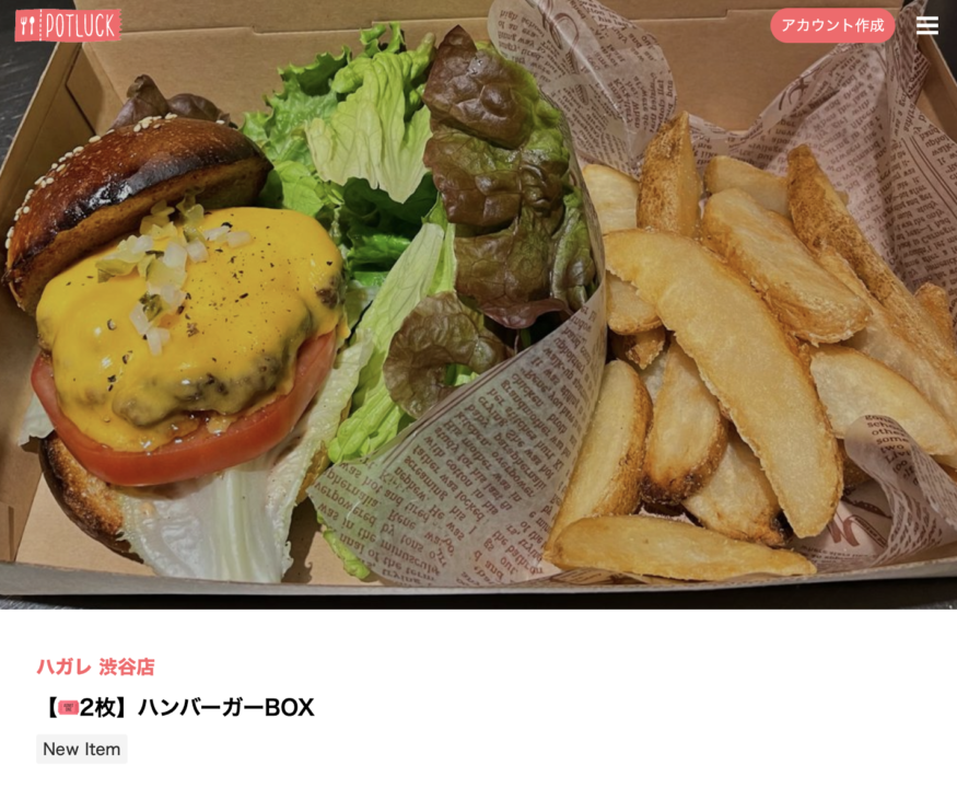 【POTLUCK(ポットラック)】テイクアウトのハンバーガーサブスク